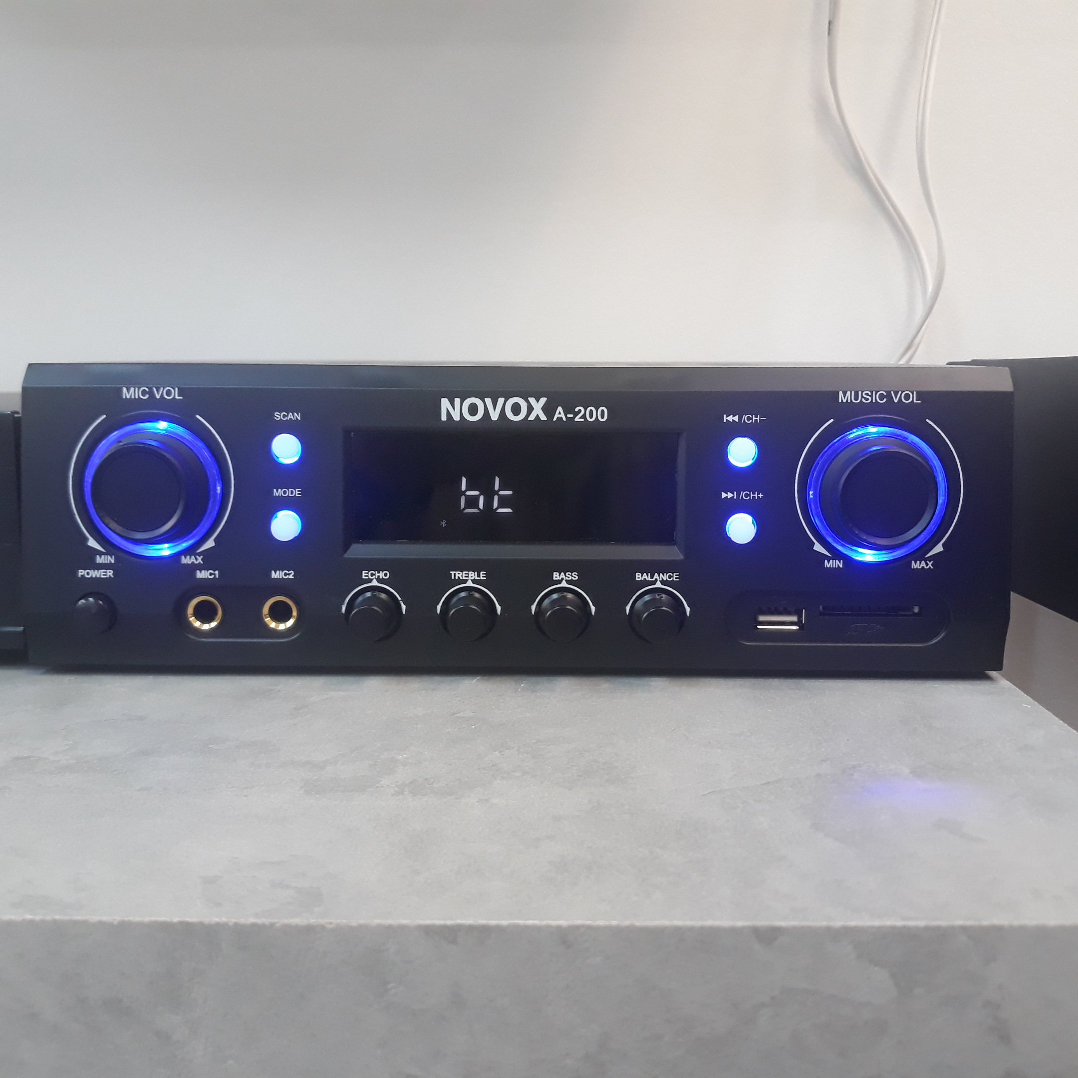 دارای دو خروجی هر خروجی با قدرت ۱۰۰ وات ، دارای پورت USB ، دارای پورت مموری ،دارای پورت ۲ میکروفن ، دارای ولومهای تنظیم کیفیت صدا ، دارای ولوم اکو ، دارای ریموت کنترل ، دارای رادیو FM قابلیت اتصال به گوشی از طریق بلوتوث